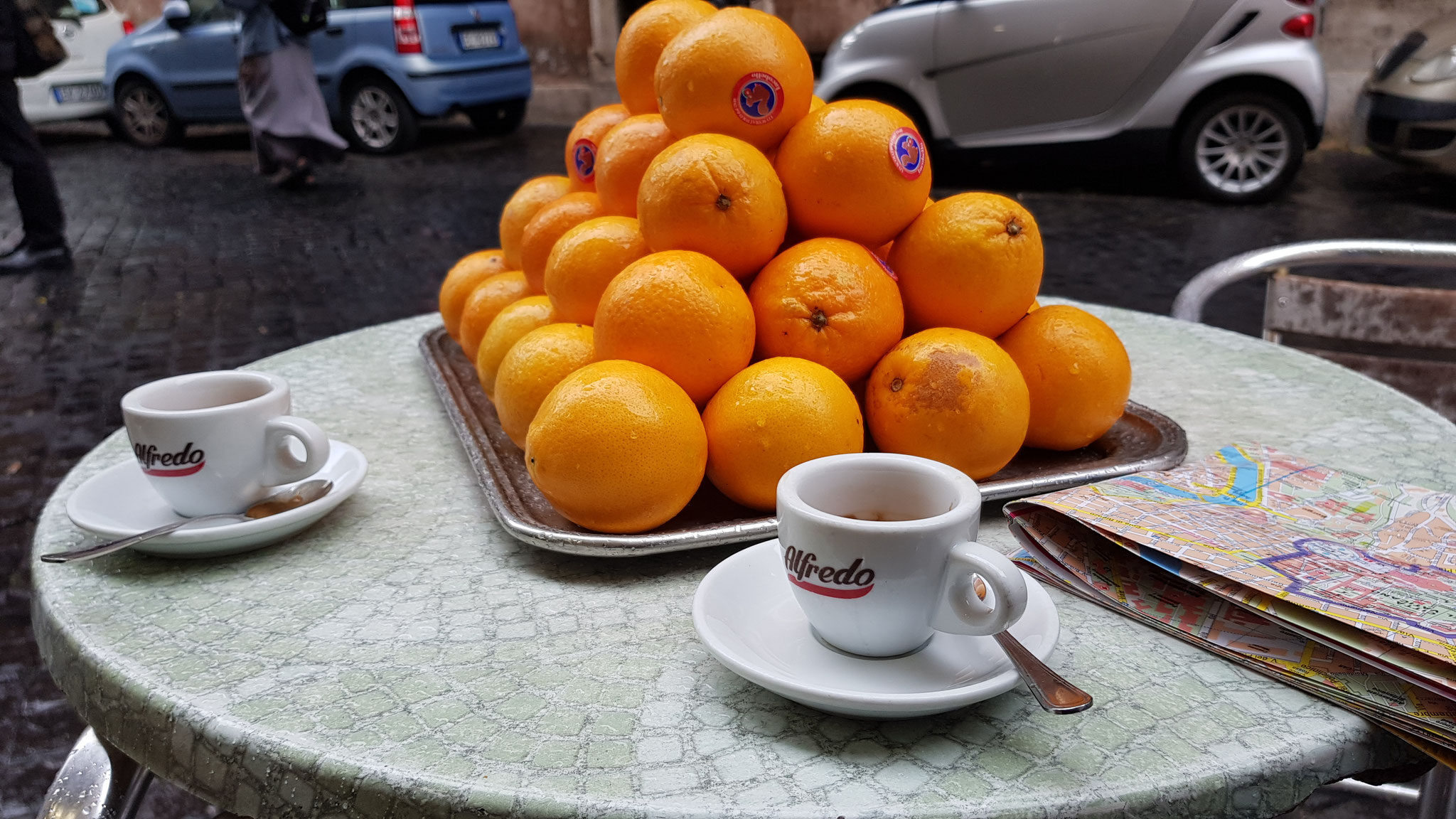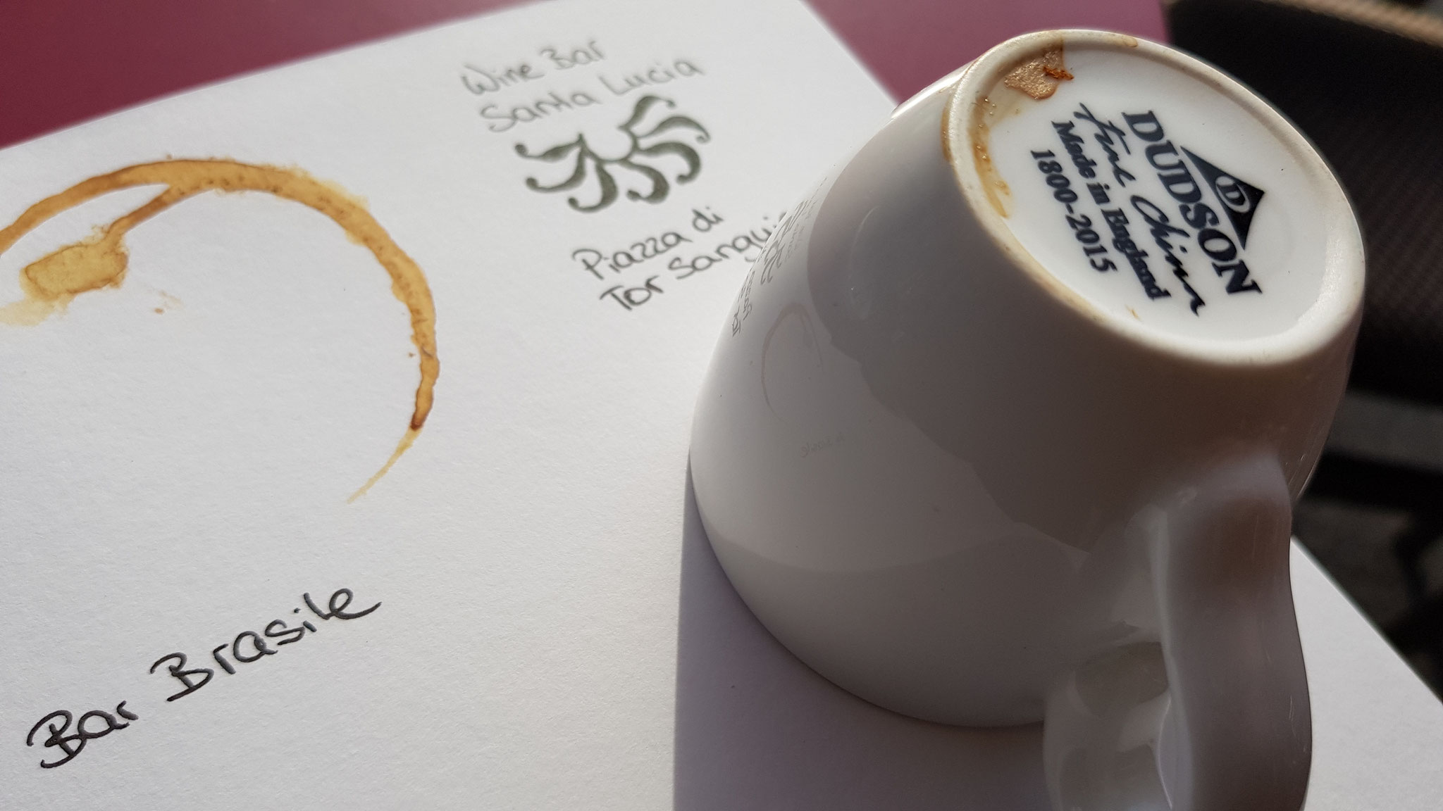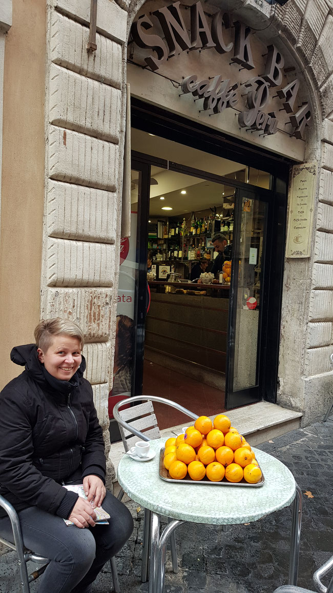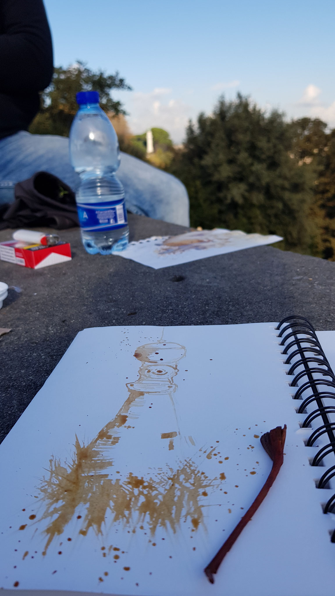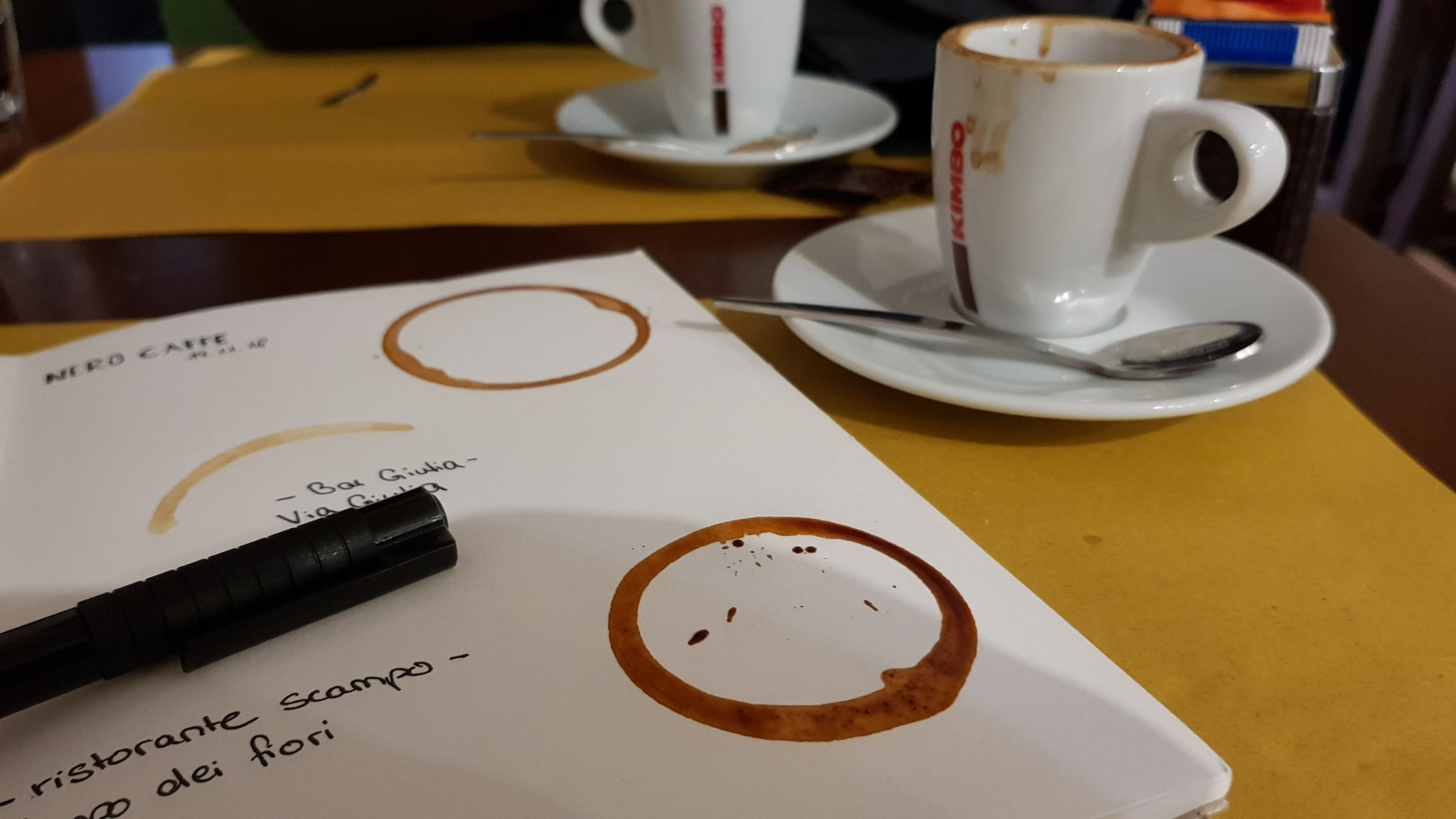 In this page I tried to capture the memory of a drink I had in Abbey Theatre Irish Pub in Rome: MAGNERS PEAR. The aluminium foil I glued to the pear came from the bottle of the drink. I have to say, that the surface I painted on is normal copy paper, no watercolor paper, because for this journal I used only the stuff I brought home from the trip. But for me... the waves in the paper are making it look more interesting.